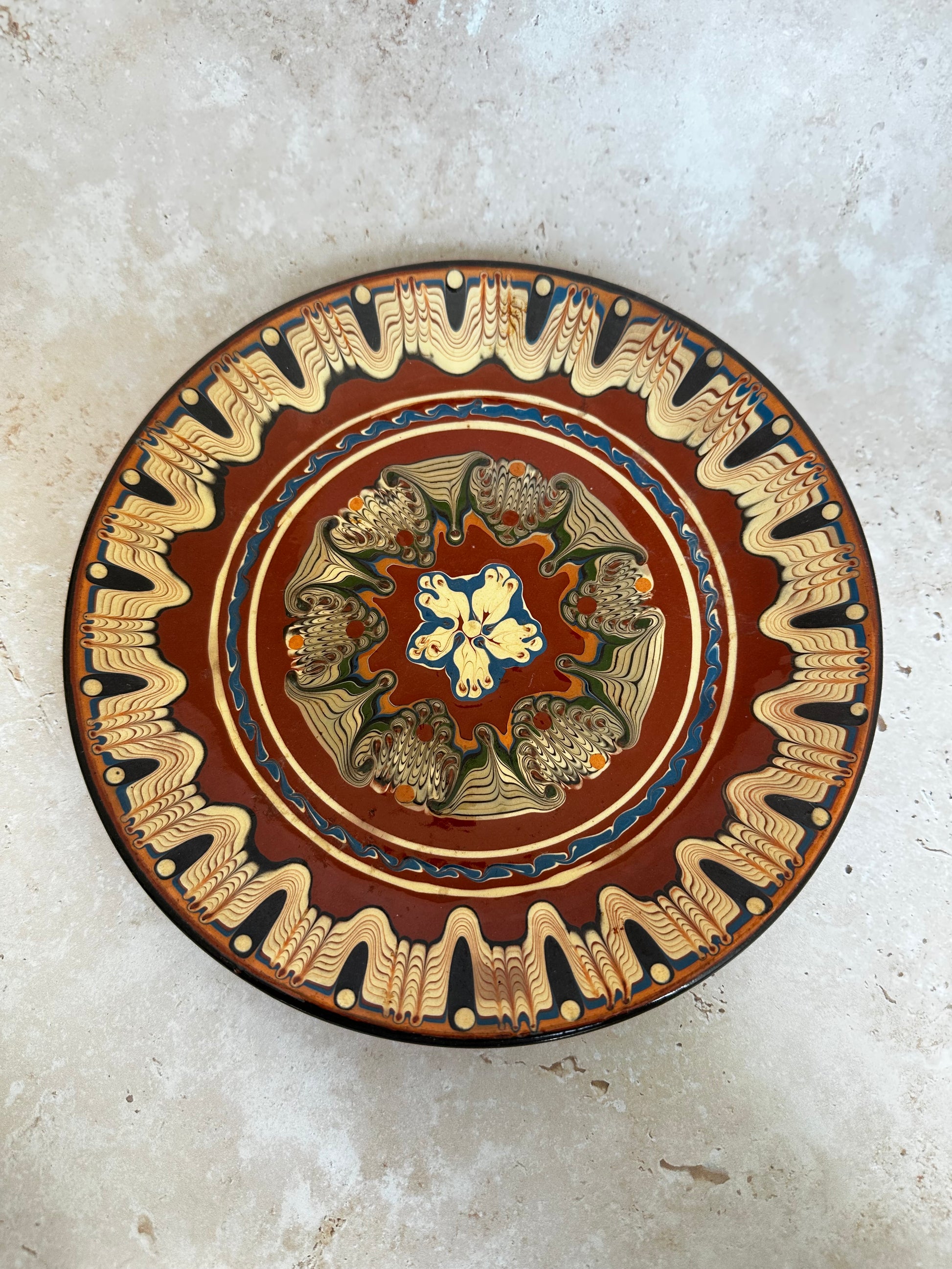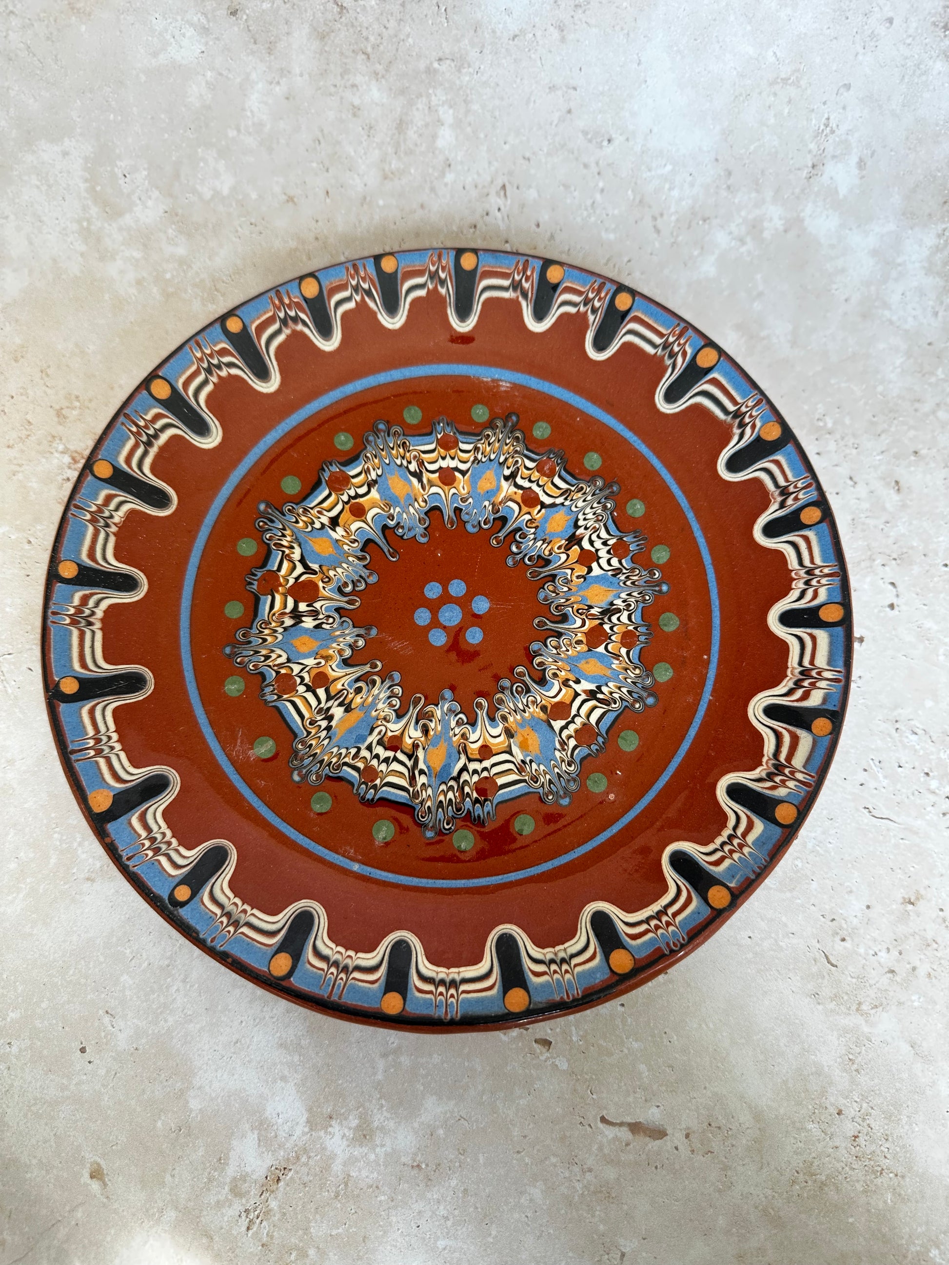 Assortment of Missoni inspired plate Troyan bulgarian 1960 hand painted red clay pottery