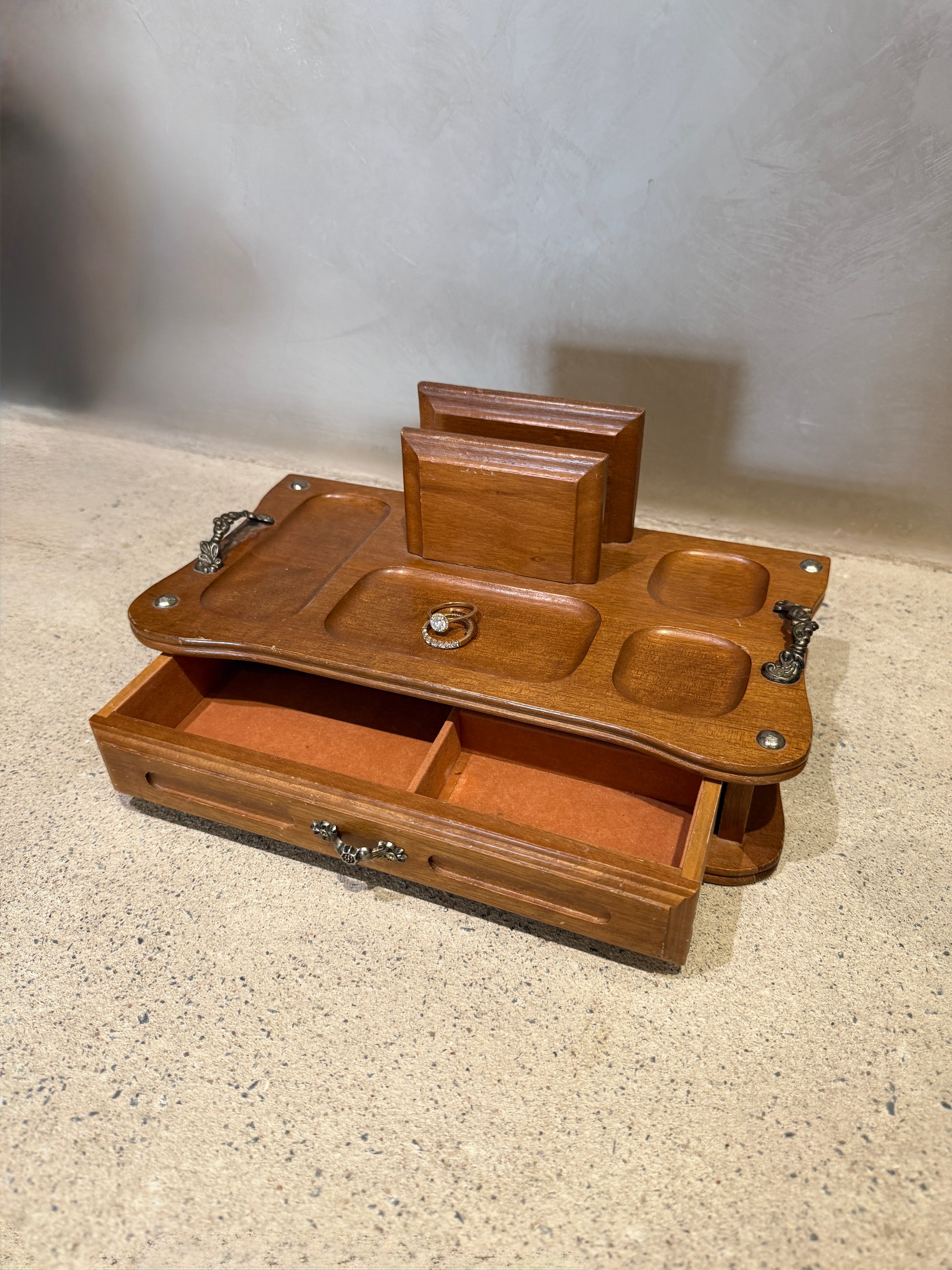 Vintage Mid-Century Wooden Valet with drawer and organizer